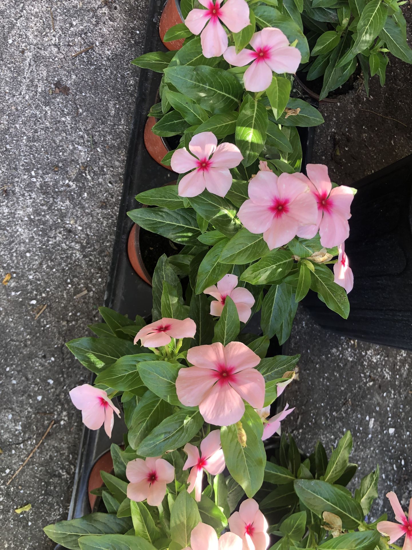 Vinca (Catharanthus roseus), also known as Madagascar periwinkle, is a sun-loving plant with glossy green leaves and cheerful flowers in shades of pink, white, red, and purple. Unlike impatiens, vinca thrives in full sun and dry conditions, making it a great option for heat-tolerant landscapes.
